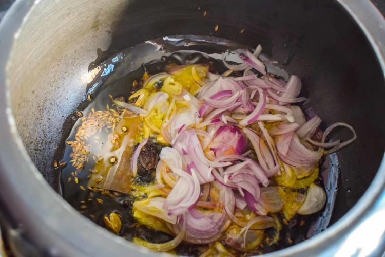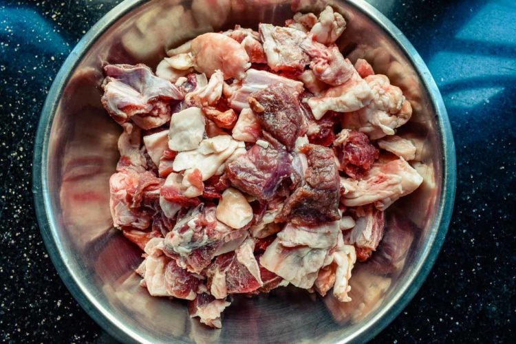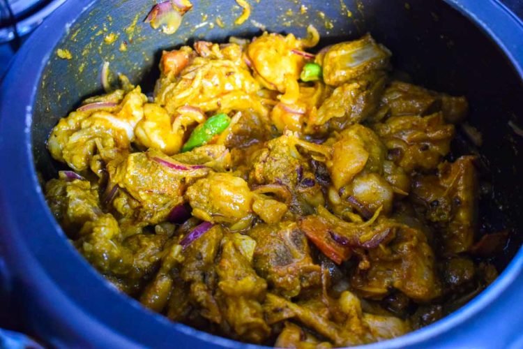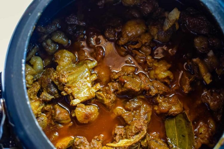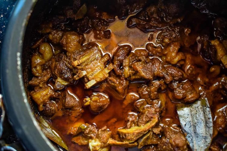 Also, the age of the goat matters more than people think. Younger goat meat (usually sold as “baby goat” or “choti bakri” at Indian butcher shops) will need fewer whistles. The mutton you get from supermarkets tends to be from older animals and will need the full 10 whistles or sometimes even 12.