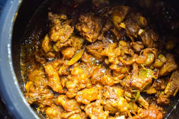 A few things to keep in mind — always cook on medium heat after the first whistle. High heat gives you faster whistles but the meat won’t cook evenly. And once you’re done, let the pressure release naturally. Don’t force open the lid. That resting time inside the cooker makes the mutton incredibly tender and lets the masala really soak into the meat.