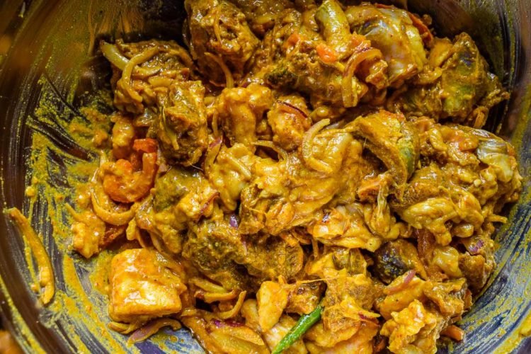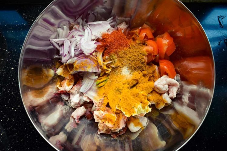 To make this dish, you’ll need some basic ingredients, like a mix of Indian spices and yogurt. This mixture will be added to the chunks of meat and simmered until the spicy flavors get deep into the curry.